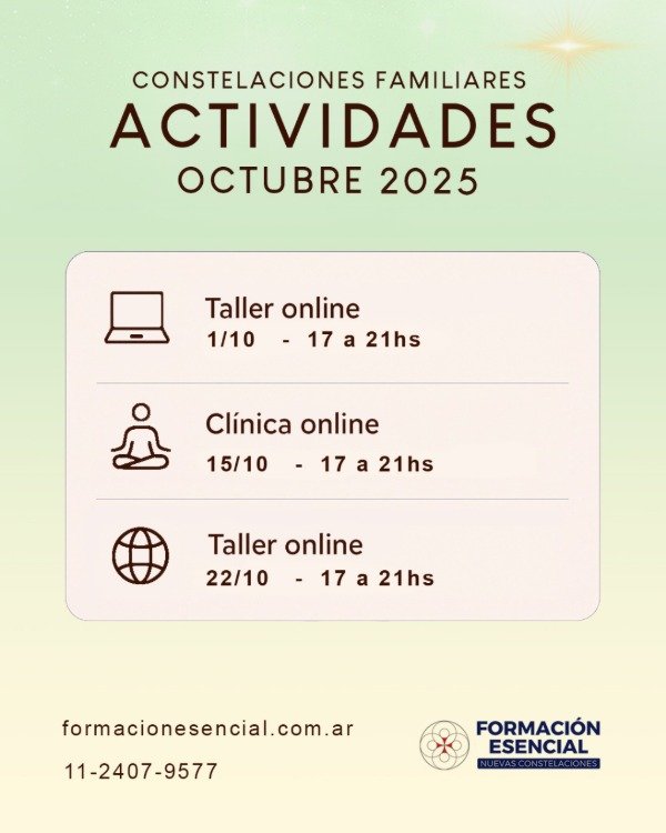 📌 Y Jornada de Práctica y Clínica de Nuevas Constelaciones Familiares para alumnos y ex alumnos de Formación Esencial, consteladores y estudiantes de constelaciones de otras escuelas.